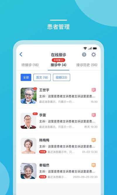 患有所求,医有所助。在线问诊让您与患者畅通连接,迅速解决患者所需。