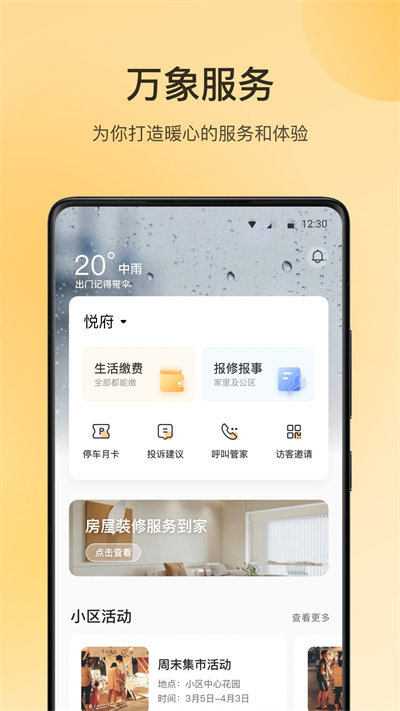 ·可以在线查看社区最新通知,在线缴纳物业费等