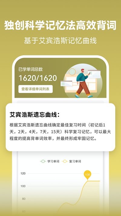 使用艾宾浩日记忆遗忘曲线科学计划,合理复习,单词牢记更轻松。