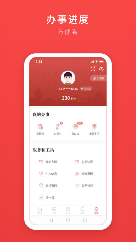 聚焦本地生活服务的应用,安馨办软件方便群众掌上获取相关政务服务办理事项,不管有什么需要办理的政务都可以直接线上办理,走不需要你自己出门,大大的提高了办事的效率,随时随地在线办事,解决多个方面办事问题,随时查看办事进度,方便又快捷。