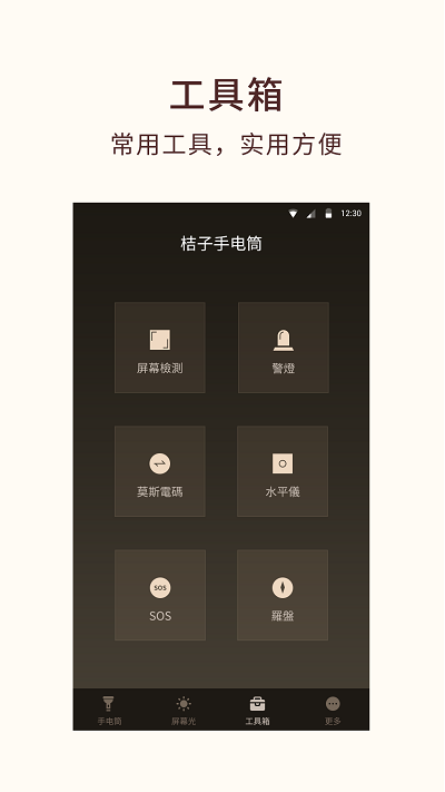 1 警灯、SOS、摩斯码、水平仪、指南针等超多实用功能。