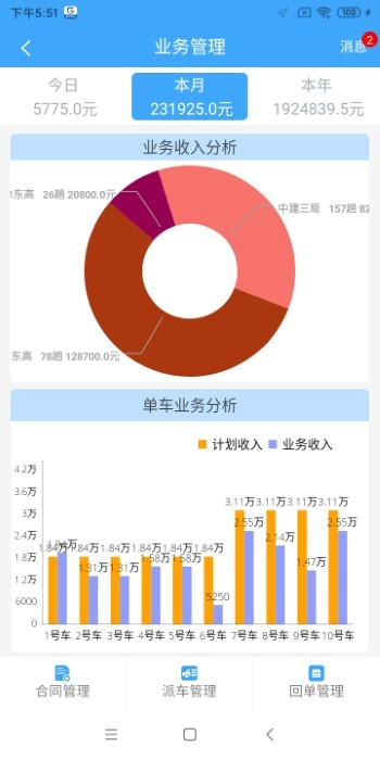 2、通过严谨的业务流程,从合同管理、业务进度管理、车辆调度、派车、回单、收入等方面,实现数字化、时效性管理。