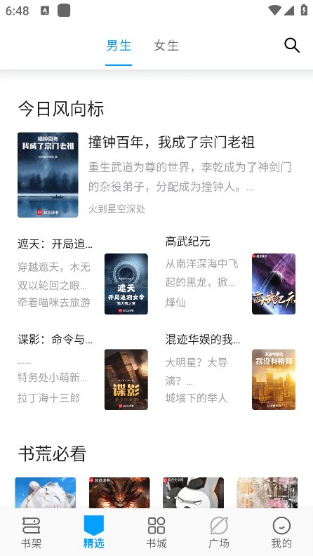 【排行榜】男生榜、女生榜、末日黑帮、热搜榜、推荐榜、精选榜。