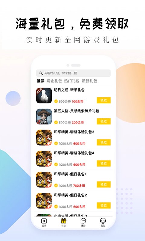 礼包大师app是一款可以领取超值福利的工具,帮你找到很多的你们想要的一些礼包,可以及时的帮你更新很多热门的游戏,还能分享一些欢乐的视频,一边看,一边领你的礼包吧,一起来看看!