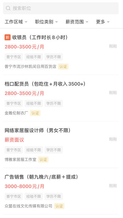 普宁直聘app是一款非常好用的手机求职招聘软件,软件专注为用户提供最方便的找工作服务,为企业用户带来更加方便的招聘帮助,让你可以更好更快的找到心仪的工作和员工,感兴趣的快来下载体验一下吧!