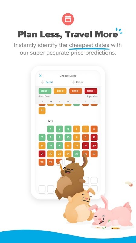 迄今为止,我们已帮助超过 3000 万旅客预订了世界各地的旅行,为他们节省了超过 18 亿美元。最多可节省 40%。使用我们的彩色编码日历查找最便宜的旅行日期。