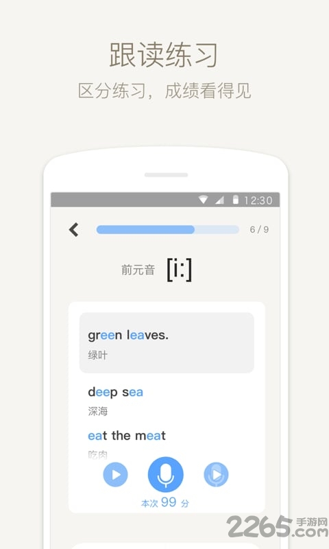 本应用让你零基础由浅入深学音标,并且通过语音评测技术帮助矫正你的发音。