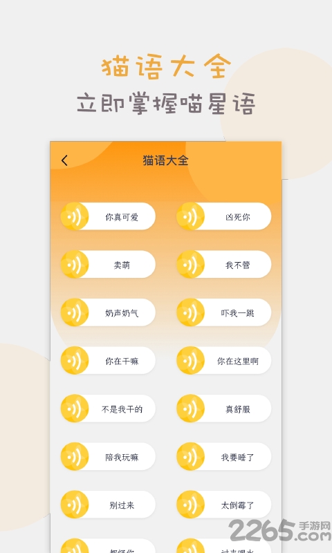 猫语猫咪翻译器app是一款超好玩的猫咪语言翻译软件。最真实的猫咪语言交流,轻松表达出你想表达的意思,完美的看懂猫语!你还在等什么?快来下载吧!