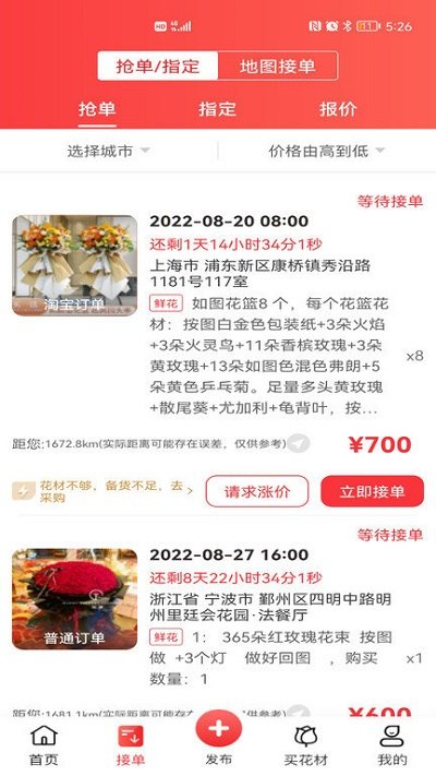 8.有急单别担心,点击找花店,指定花店配送订单。