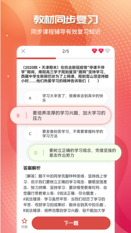 中考复习提分利器!初中政治中考辅助冲刺!深受老师们青睐、家长们的放心选择。轻松减轻家长负担,智能总结错题难题。精选中考真题、中考模拟等题型,更有智能复习闯关模式,让学习变得更有趣,每天坚持10分钟,中考知识点不再头疼。