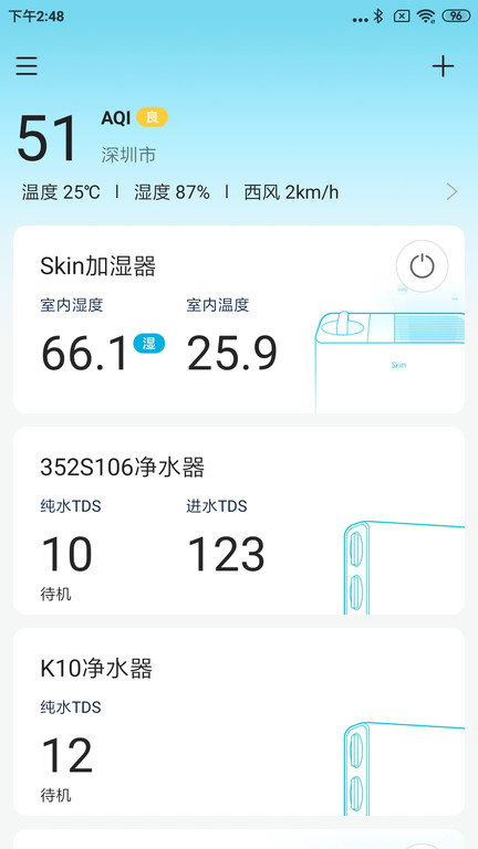 进入首页的时候即可直观查看各个净水器的剩余电量以及能够支持的续航时间;