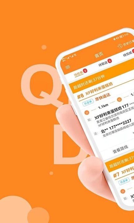 1.及时在线接单,支持随时进入订单中信息接单,完成订单配送的要求