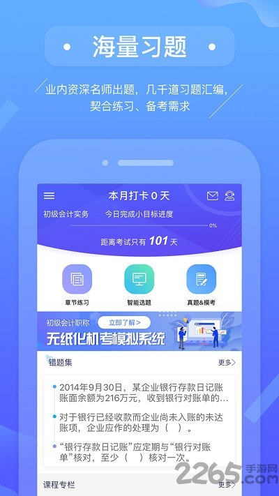 帮助你考试的应用,里面有各种试题,考题,历年的考题,真题,模拟考试,最权威的初级会计职称模拟考试,考试题型、考试时长、考场规则与官方正式考试完全类似,帮助考生在考试的时候轻松的应对各种试题,通过考试可以变得非常的轻松,提高了考生的考试通过率。