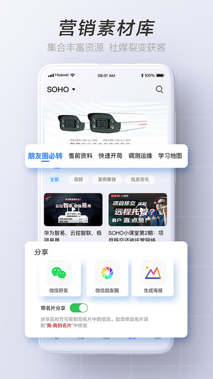 产品/方案卖点技术知识分享在线培训赋能售后实施指导,软文海报短视频等富媒体内容应有尽有;自定义电子名片,一键分享裂变。