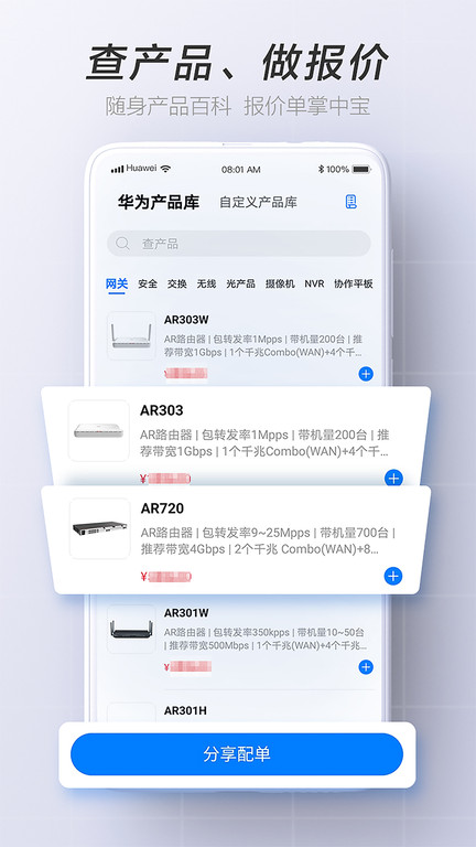 随身携带的产品百科,一键获取产品信息及资料;贴心懂你的效率神器,快速查询/添加产品,一键完成报价单生成,支持报价单内容自定义。