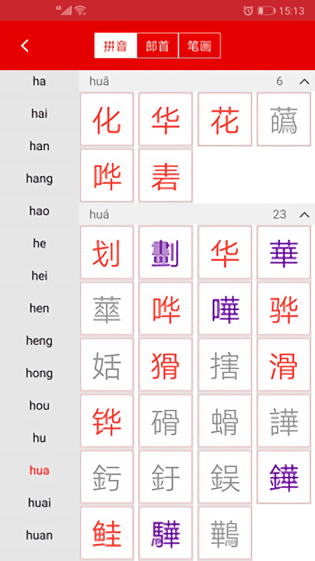 1.通过部首对文字进行分类,让用户快速的找到自己所需要的文字。