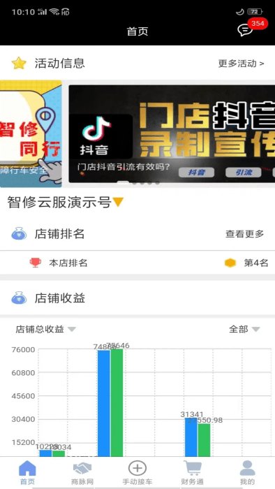 智云管店官方下载为汽车门店维修养护提供了管理方案,平台在里面进行相关操作都可以进行记录,查看店铺的收益,汽车市场方面的引流问题可以提供帮助,软件中的功能可以很好的帮助用户查看门店经营状况。能够查看门店收益,方便用户进行客户管理。这里还有市场行业分析等功能,可以帮助相关用户进行更好的办公处理各项事务,能够及时进行售后服务提高门店效益。