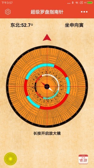 ·财运罗盘:根据当日计算出当天财位,喜位,贵位的方位。