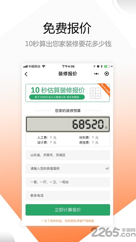 10秒算出您当地装修的价格,提前算一算,做到心中有数。