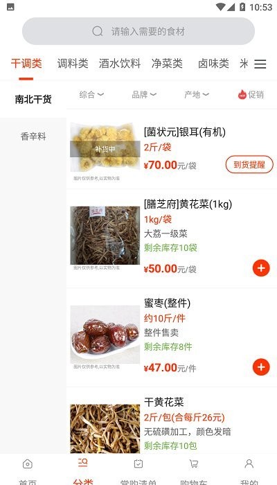 莲菜商城是专门提供农产品和生鲜食材的应用,这里营销的商品类型多样,其中涵盖了干调类、调料类、酒水饮料、净菜类、米面粮油、牛羊肉、蔬菜鲜肉等分类,各种各样的食材都可以在该平台进行挑选,在这里即可搞定所有的食材购买产品,这样就可以解决用户线下东奔西走挑选和购买的问题,可迅速提升购物的效率,不出门也可以轻松享受购物乐趣,系统可,根据消费者的购买历史进行统计,可快速查看到常购清单列表,这样就可以帮助用户快速找到购买过的产品,可以快速进行下单,解决您采购的需求
