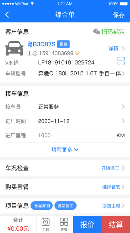 【接车开单】支持车牌、VIN码及行驶证多种方式扫码开单,常用开单类型为洗车单、接车单、综合单,一键扫码开单代替传统纸质单,更方便快捷。
