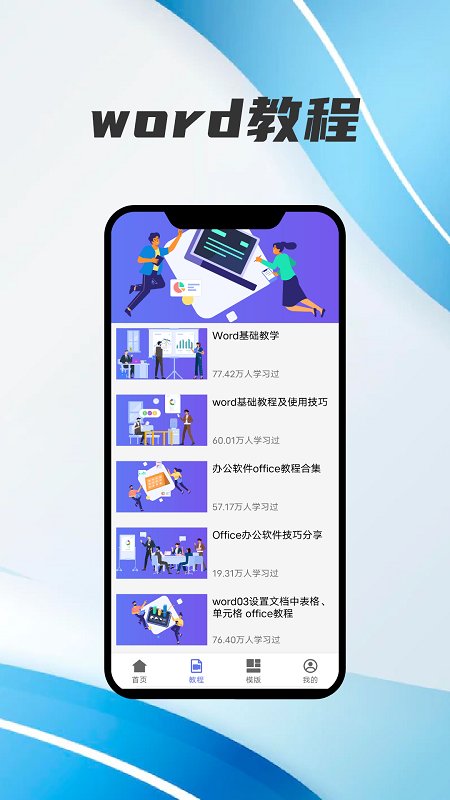 支持word文档编辑,包括文本输入,表格插入,图片插入,各类格式调整,让您迅速掌握word办公互助文档软件的方方面面。内容来自权威网站,精心编排,视频教程,图文并貌,初级到高级内容全面,有各种建立模板供参考,让您轻松面对职场,是办公学习必备的软件!