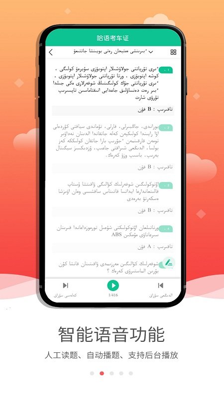 5、语音功能:语音驾考自动播放,后台听题模式适用于想解放双眼或中老年、不识字的人