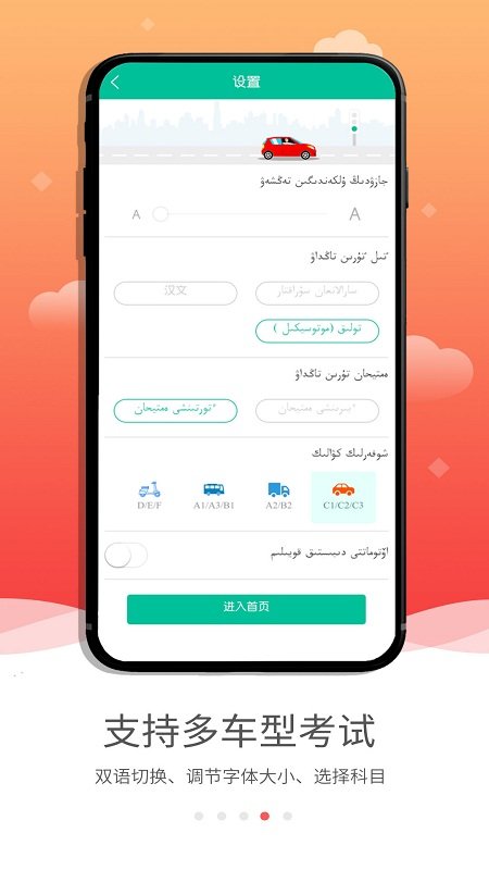 哈语驾考软件是服务于以哈萨克语为母语的用户朋友,让他们可以轻松学习驾照的软件,帮助你快速学习,轻松通过所有科目的考试,软件专为哈萨克语的朋友打造,同步实时更新最新的题型,手机上可以随时随地练习,你还在等什么?需要的话就来下载吧。