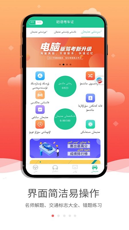 哈语驾考为哈萨克族考驾照的学员提供了科一科四在线练习和模拟考试,是一款哈汉双语版本的驾考学习APP。
