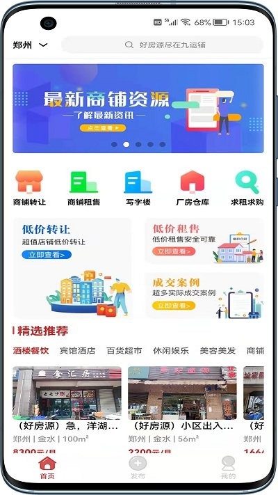 九运铺app为大家带来商铺招租服务,不管你是房东还是准备租房的都可以在软件内查看,大家可以在这里查看你想租的各种地段的商铺,为大家带来全方位的图片,软件内有非常多的选择,让你可以租到满意的商铺,让你在这里不用到处跑就能看房。