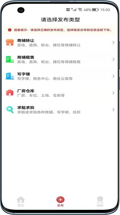 3.有优质商铺需要出租或想转让自有商铺的用户也可以在这里完成操作,选择相应的服务类型。