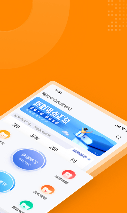 网约车司机考试聚题库手机版是一款为网约车司机打造的考试模拟软件。随着越来越标准化的网约车,司机们的行为操作也需要越来越规范化了,本软件可以让你快速学习网约车知识,获取网约车常备技能以及突发情况的处置方式等。各大网约车平台都在用哦!