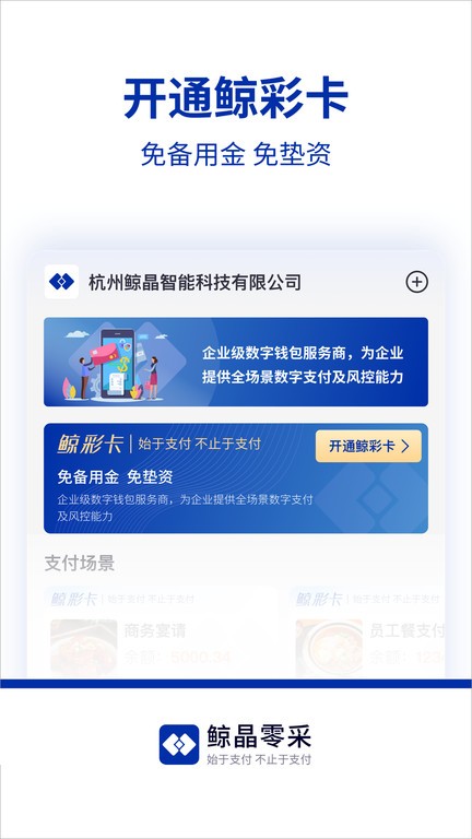 鲸彩时刻旗下的行业支付产品,专注于生鲜采买,零星采购,门店备用金等支付场景的支付解决方案。为企业提供一站式的场景设置,支付管理,额度控制,广域场景管控等支付能力。让财务管理更加轻松效率。注册即可享受优质高效的交易管控服务,点击下方就能下载了哦!