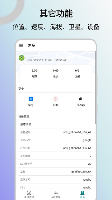 “信号检测仪”是款集手机、WIFI、蓝牙、GPS等信号检测分析功能的应用。