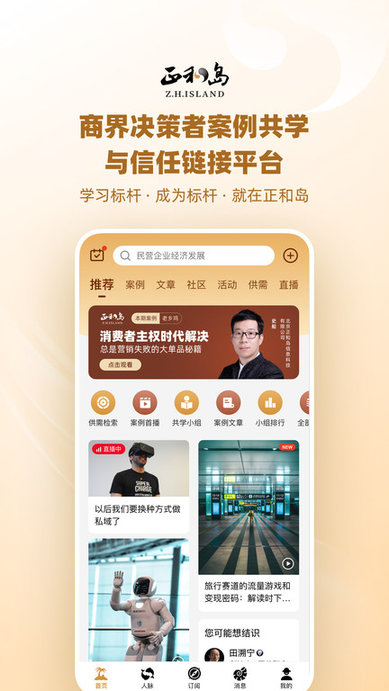 正和岛app是由北京正和岛信息科技有限公司官方旗下开发设计的匠心之作。一个很棒的商务办公类应用系统。以人脉互动为核心元素展开。让您在这里轻松识得商业精英,并与之进行沟通,学习方方面面的企业运作经验,成功技巧等等。