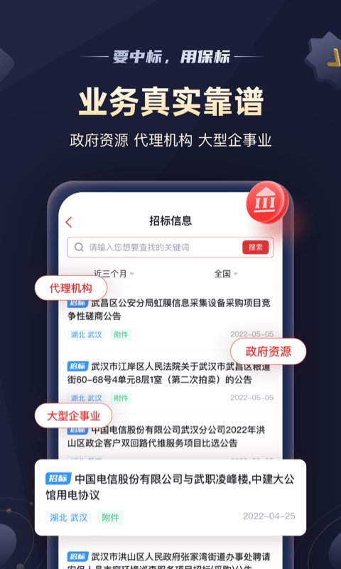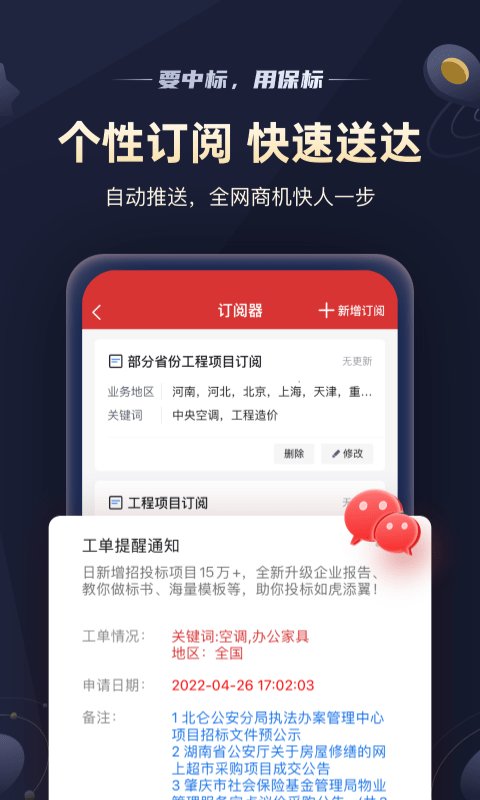 要中标,用保标!保标:可以定制行业与地区信息的招标采购利器。