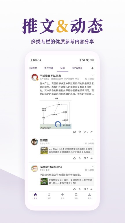 3、推文动态,多类专栏的优质参考内容分享