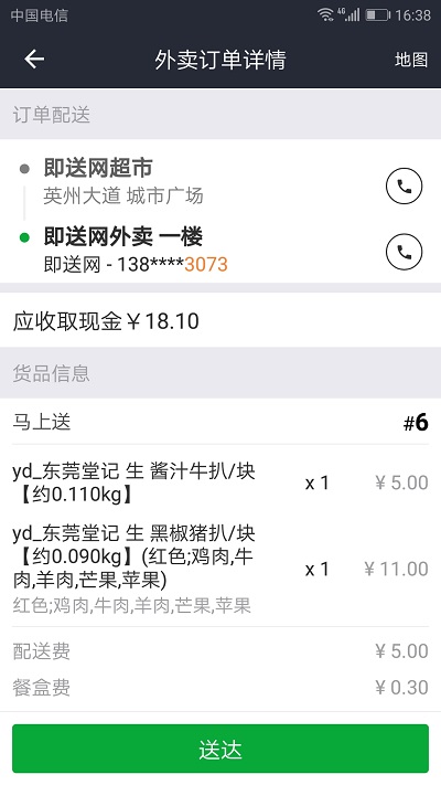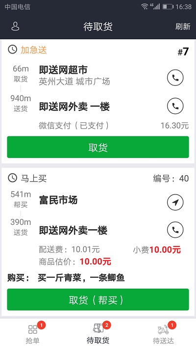 2.[订单管理]随时随地接单、送单。