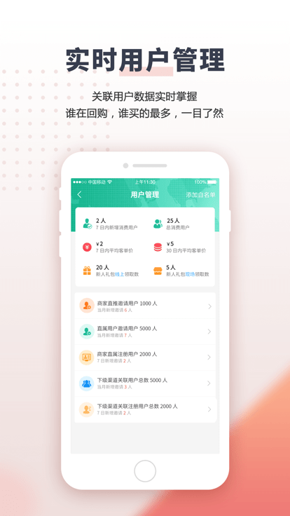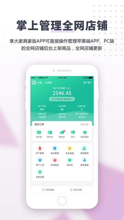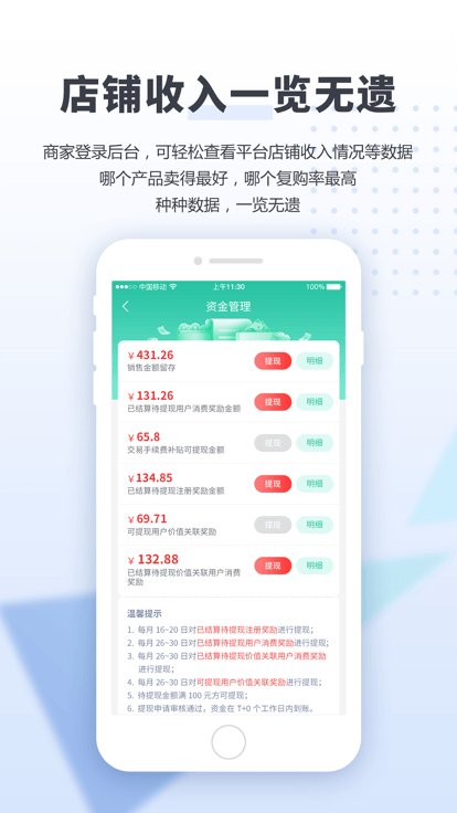 它可以为联盟商家提供便捷的手机端应用,让商家可以随时随地管理自己的店铺和用户。