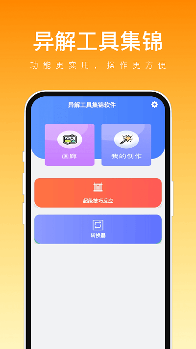 集合众多实用工具的应用,包含画廊、我的创作、超级技巧反应、转换器等等,操作简单,即点即用,避免下载超多应用的难题,让您的手机节省更多空间。希望异解工具集锦能成为您的生活助手,赶快来试试吧~