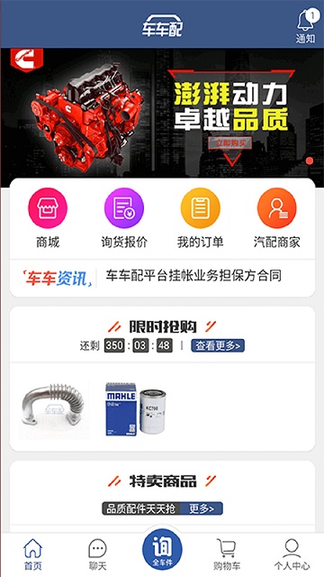 车车配商城app是面向维修厂用户,为解决汽修人员工作中汽配采购成本高、质量差、过程繁琐等实际问题而上线的移动端软件,是汽修厂掌中的汽配大世界,正品配件、一站式购物体验、极速直达,让汽配采购更省时、省心、省力、省钱!