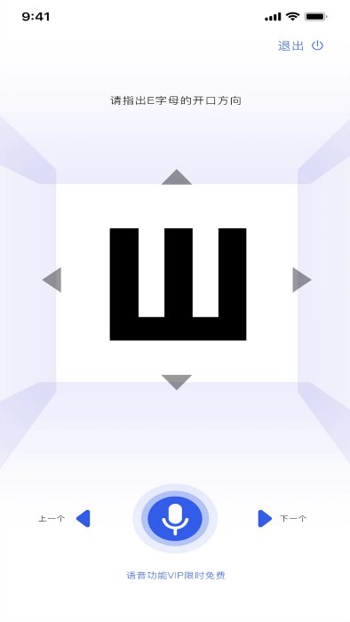 你可以看到当前的用户人物,还有视力改善用户人物,开始你的视力测试,也可以用语音说明。