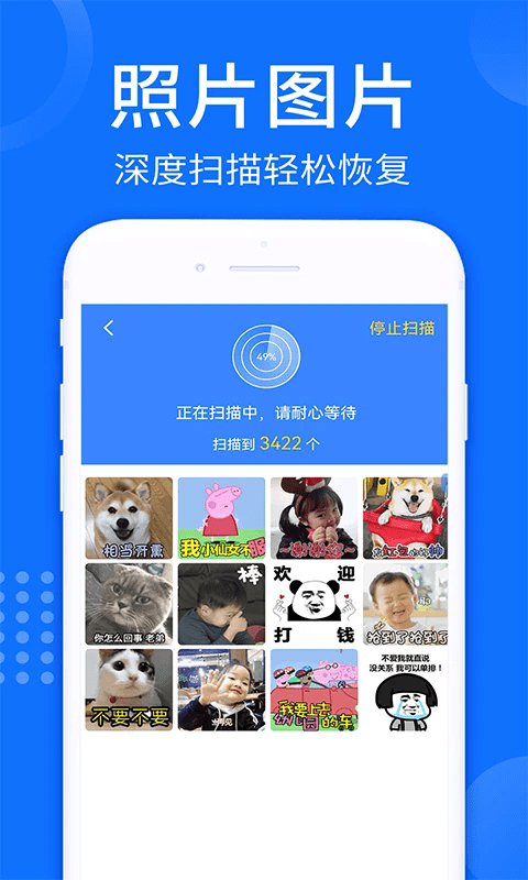 可能因为您手机上的图片或者文件太多,造成扫描很慢,请耐心等待就好,能否恢复出文件一切以扫描出来的结果为准。