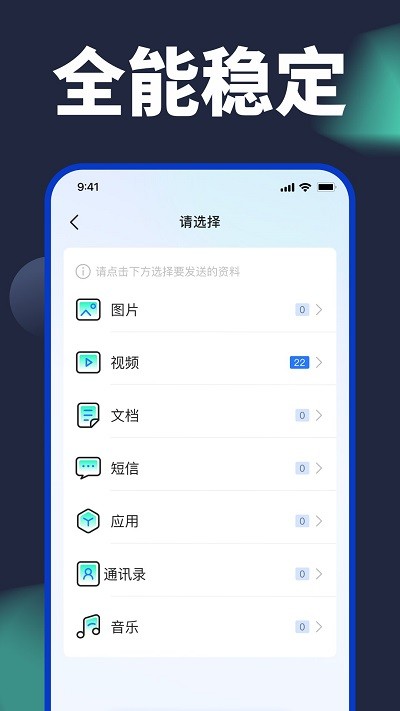 ·数据大迁移,无需流量,轻松换机,一键将旧手机的联系人、短信、照片、音乐、视频、应用迁移到新手机上,轻松实现一键换机、手机搬家