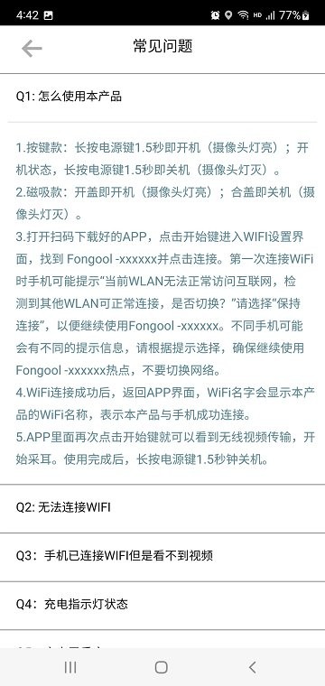 fongool免费版资源已上线,用户通过与可视耳勺设备的热点连接,在移动设备上显示耳勺微距镜头的实时画面,在预览实时画面的时候,可以对画面进行镜像翻转,可以拍照、录像保存当前的照片和视频,并能在软件中进入我的相册查看所保存的照片和视频。