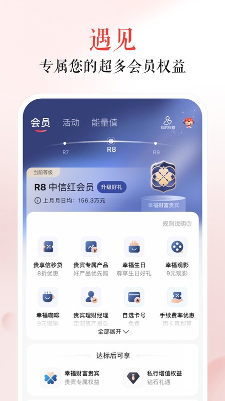 ·会员:打造客户专属会员成长体系、甄选金融、生活权益,汇集热门活动