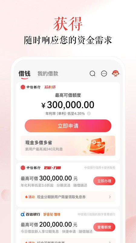 ·借钱:一站式个人信贷服务,贷前、贷中、贷后全方位升级,随时响应客户的资金需求