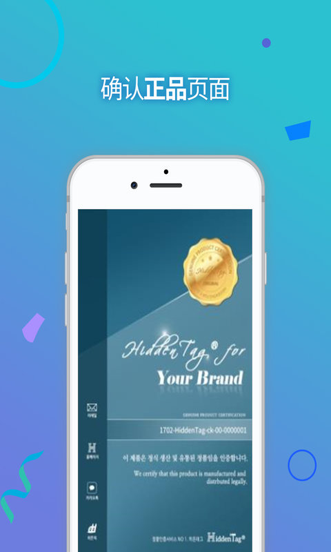 正品认证hiddentagcopapp是由北京息科安宝信息技术有限公司官方特别开发并设计的专业产品,一个能够在这个假货横飞的年代保证自己家的产品不被盗版侵害的防伪认证系统,非常的好用且实用哦!希望可以帮助到你!