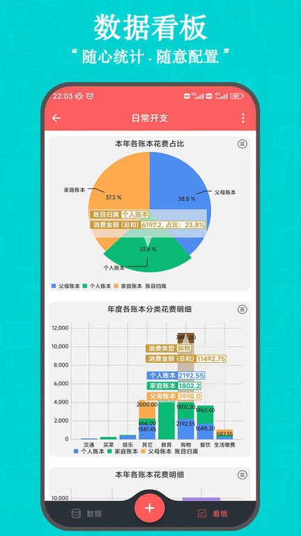软件提供了自定义数据看板,自定义记录内容等功能,可以帮助用户打造适合自己的数据记录目的。