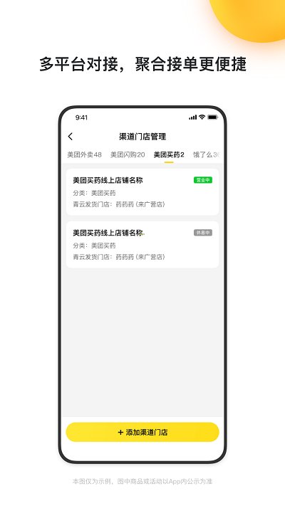 青云聚信平台是提供给餐饮和零售自配送商家使用的,具有一站式履约过程管理能力的信息管理工具。青云平台能够为商家提供多商流渠道订单接入和多运力配送服务的聚合能力,商家可以在不同运力的配送服务间进行比价、发起配送、取消配送、添加小费等配送管理操作,也可在青云平台内完成各商流订单履约配送环节的一站式管理。
